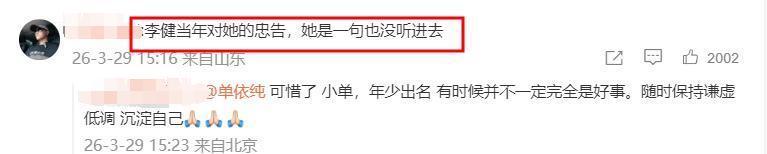 与此同时,很多人都想到了李健对单依纯的忠告,直言她一句也没听进去。