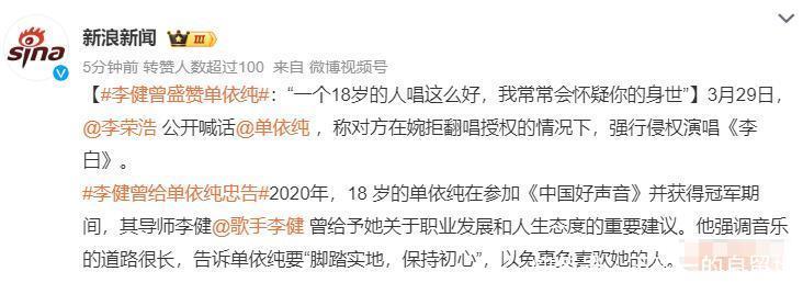 如今侵权事件发生,网友纷纷直言李健的话,单依纯一点也没听进去。